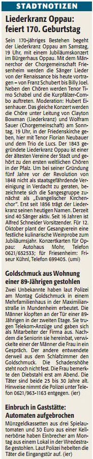 Bericht in der RHEINPFALZ